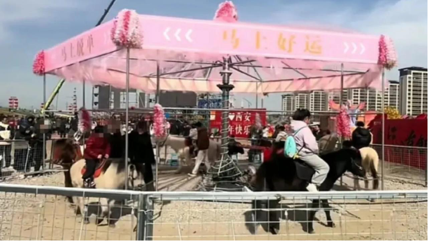 中國西安近日出現活的「旋轉真馬」遊樂設施。圖/翻攝自微博 @鳳凰網