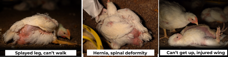 但羅森堡親自調查後,卻在佩塔盧馬家禽的一間供應商那,看到了相去甚遠的畫面。2023年4月24日,在屠宰場的輸送帶上,監視器照著一排一動也不動、被擊暈的母雞,突然,一隻清醒的、未被擊暈的母雞出現在鏡頭中,牠同樣被倒掛在輸送帶上,但還在拍打著翅膀。一名身穿防護服的工人繼續作業,在把那些拍打著翅膀的母雞頭朝下放進滾水前,似乎沒有在多做些事來殺死牠們。