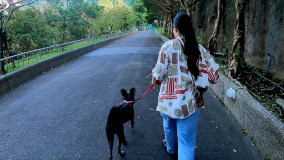 新北市動保處已提供多項犬隻行為訓練與諮詢服務。圖中被認養犬「Lange」出現焦慮行為,由訓練師帶至安靜戶外空間進行減敏練習。這證明,專業介入能幫助動物重新適應家庭生活。  取自/新北市動保處