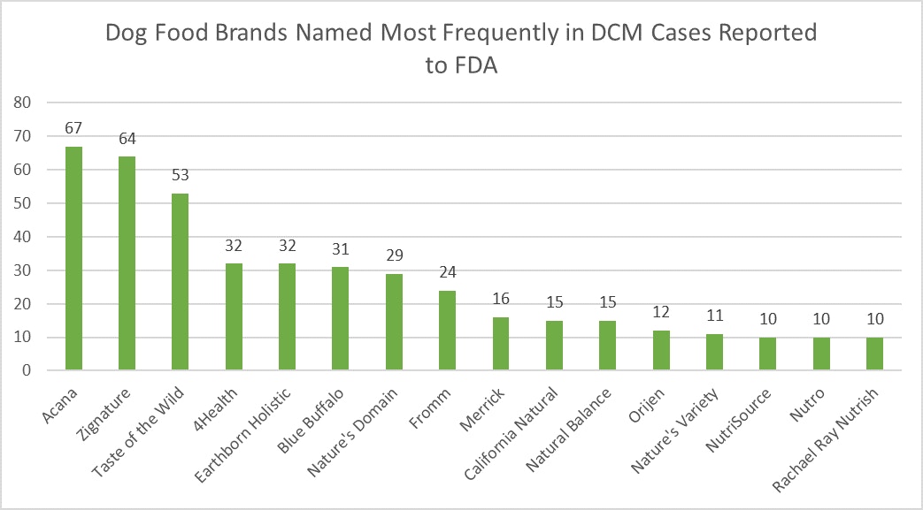 由於研究還需更謹慎的調查,FDA並沒有強制下架,也沒有提出其他建議,但FDA提供了這些死亡犬隻長期食用的品牌,包含了Acana、Zignature、Taste of the Wild、4Health、Earthborn Holistic、Blue Buffalo、Nature’s Domain、Fromm、Merrick、California Natural、Natural Balance、Orijen、Nature’s Variety、NutriSource、Nutro及Rachael Ray Nutrish,包含範圍相當廣泛,多數產品也在香港、台灣都購買得到。