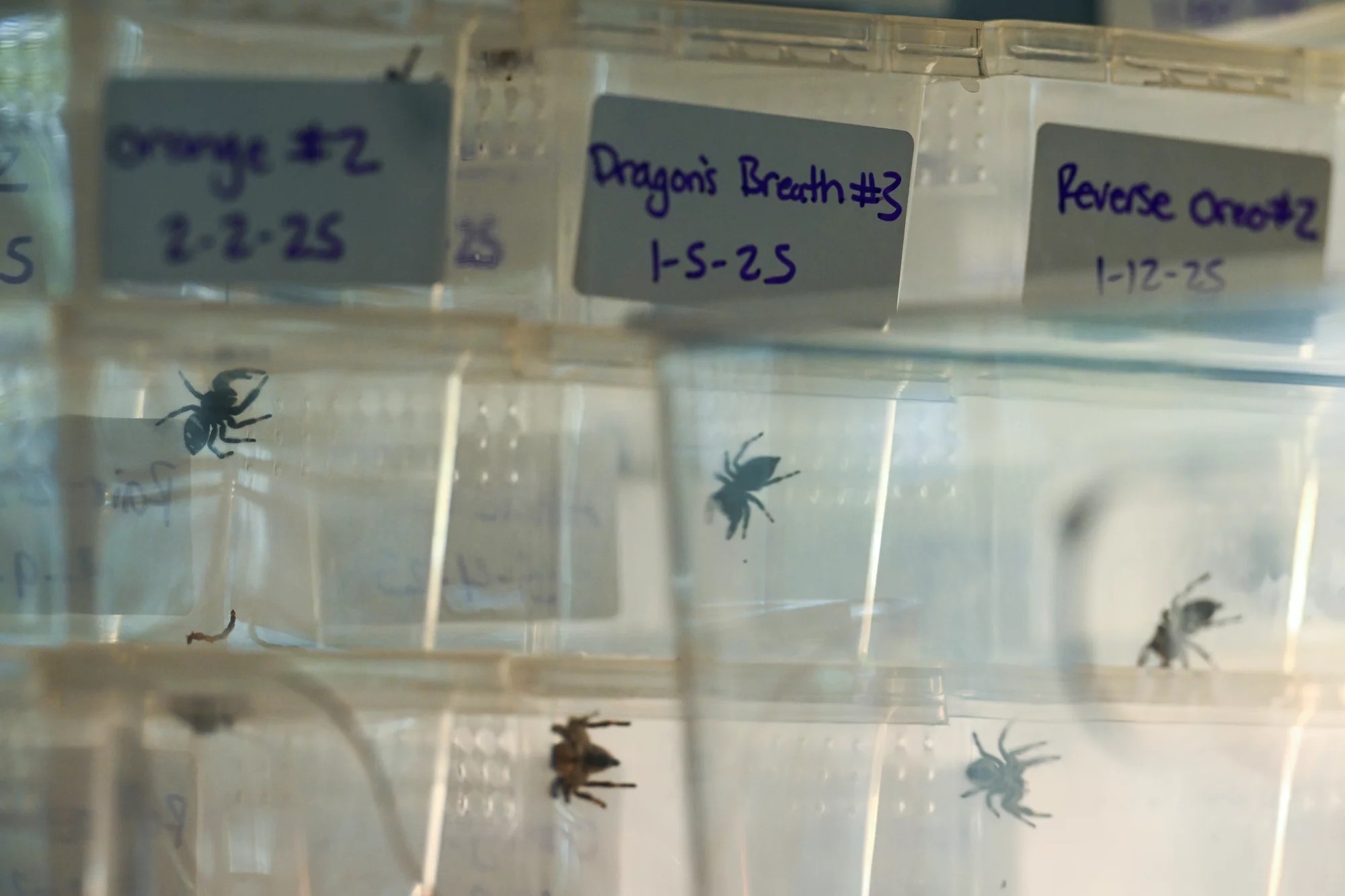 亞利桑那州瑟普賴斯市「亞利桑那跳跳蛛寶」(Jumping Jewels AZ)的老闆穆里根表示,在養了第一批跳蛛兩週後,自己才鼓起勇氣去摸牠們。而現在,穆里根繁殖待售的跳蛛多達數千隻,她和顧客有很多共同點。她笑著說:「我的顧客95%都是女性,她們得不​​到伴侶的支持。」