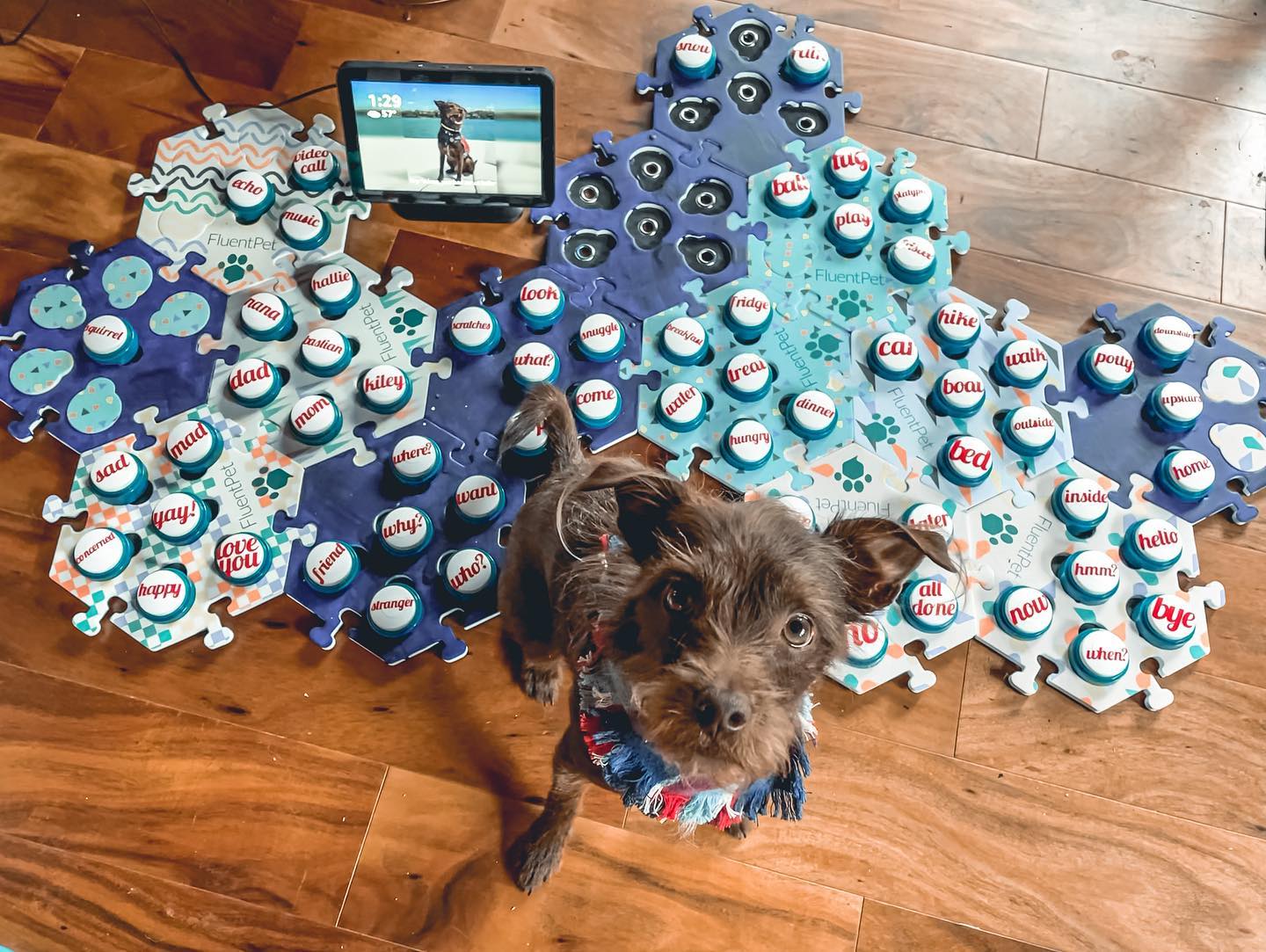 巴斯蒂安和牠的溝通板。 取自Bastian the Talking Terrier