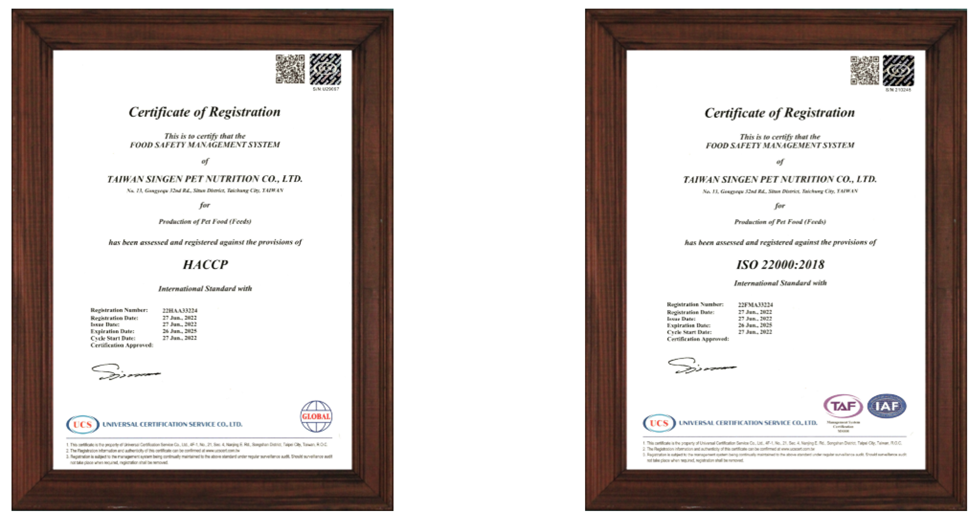 國際級認證是食品工廠的品質安全保證,根據產業調查與外貿協會等最新公開資訊,寵物食品工廠的認證概況是:通過HACCP(Hazard Analysis and Critical Control Point,危害分析重要管制點) 認證業者約有 50–60 家;具有ISO 9001 / ISO 22000 認證的業者約有 40–50 家;同時具備雙認證或多重認證的,估計約在 20–30 家。這些工廠多是具備一定規模的自動化飼料廠,或是專門承接跨國品牌代工(OEM/ODM)的專業工廠。