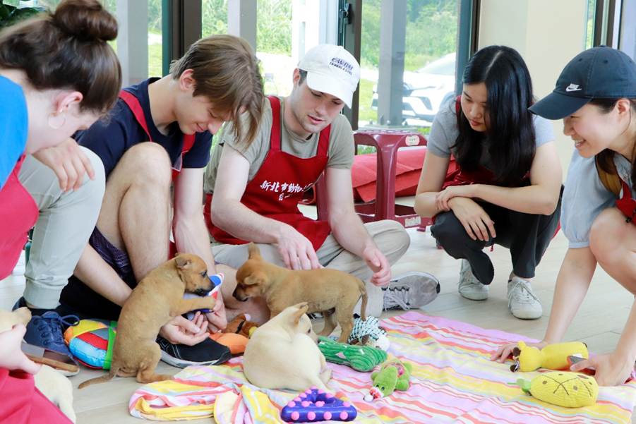 美國大學生也走訪瑞芳動物之家,並體驗照顧幼犬的志工工作。   /取自新北市政府官網