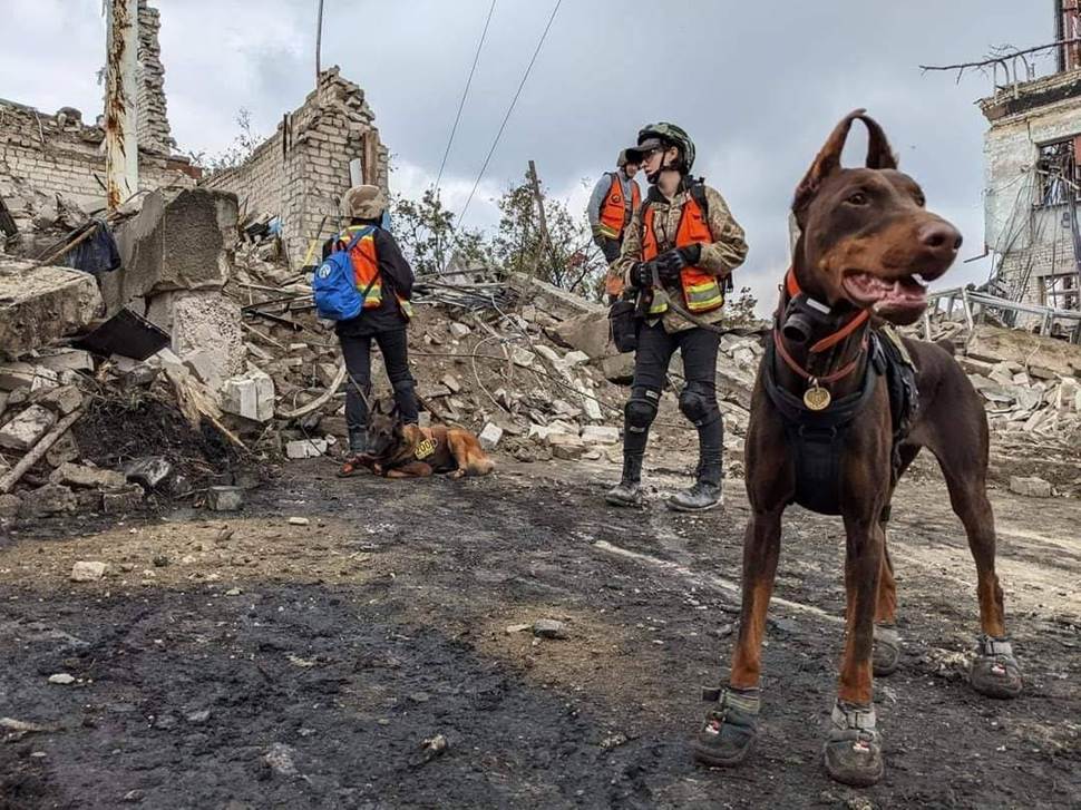 根據烏克蘭國家通訊社Ukrinform報導,隸屬巴伐洛格勒(Pavlohrad)「Antares」搜救犬隊的Hanna,是一隻杜賓犬,接受過搜尋倖存者與罹難者的專業訓練。一年多前,牠被獸醫診斷罹患癌症,預估僅剩兩至三個月壽命。然而牠沒有離開犬隊,在之後的一年裡,仍持續進入倒塌建築與爆炸現場執行任務。