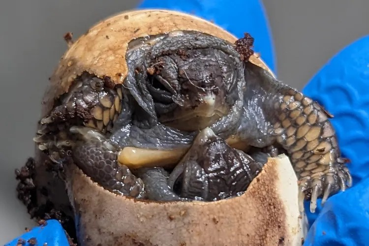 位於維吉尼亞州的「洛亞諾克西南維吉尼亞野生動物中心」(Southwest Virginia Wildlife Center of Roanoke)9月中在社群分享了這起罕見事件,中心表示,他們正在幫一隻被救援的東部箱龜照顧牠的蛋,一共有3顆,其中有顆蛋外觀看起來跟其他兩顆不太一樣。