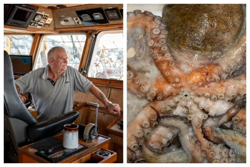 薩爾科姆(Salcombe)捕蟹船長強・多諾姆(Jon Dornom)說,他今年二月首次拉網時,發現「滿船都是章魚」,他說:「牠們力氣驚人,黏在籠子上怎麼也拔不下來。就算放進桶裡,也會爬出來。」他回憶,一趟出海曾捕獲近三公噸章魚,收入高達兩萬英鎊(約新台幣86萬元),但隨後蟹籠中只剩空殼。