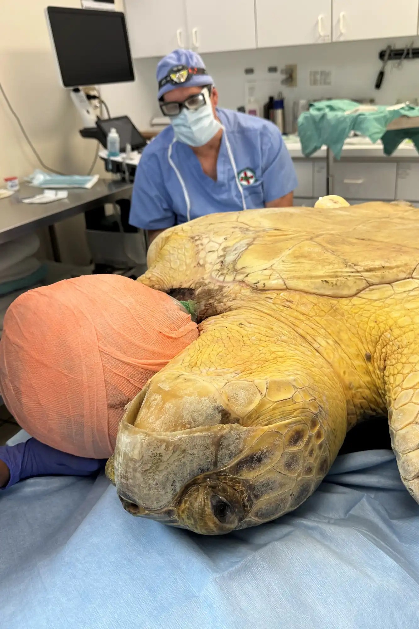這隻約25到30歲的赤蠵龜被取名為莫莉(Molly),8月時,牠在佛羅里達礁島群(Florida Keys)附近被捕蟹籠的繩索纏住,被一位漁民發現,但讓牠面臨生存危機的,卻不只捕蟹籠——在莫莉的頸部左側,有一顆非常大、紅通通的腫瘤,就算把繩索割斷,那顆大腫瘤看起來也不會讓牠活太久。