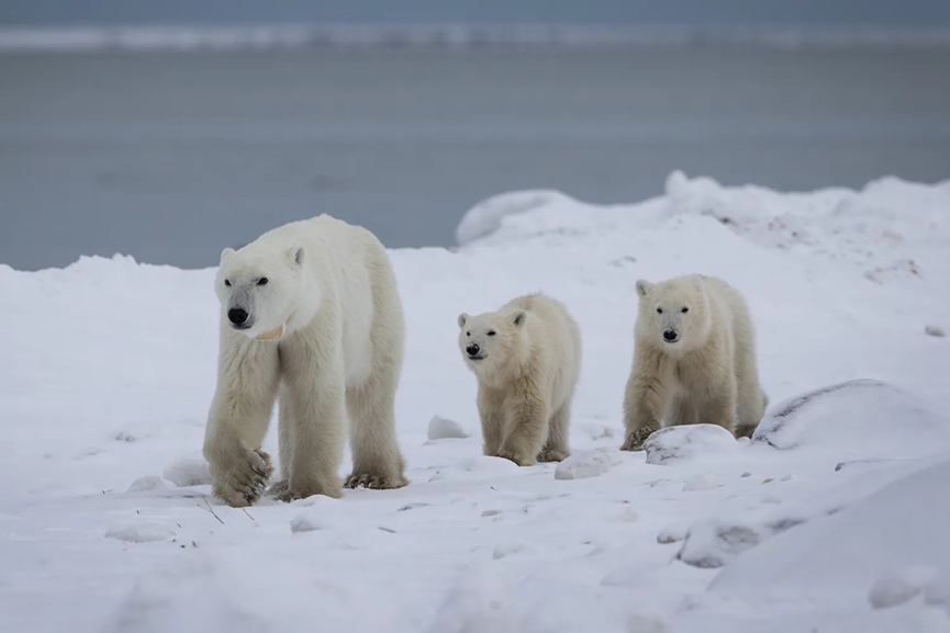 非營利保育組織「北極熊國際」(Polar Bears International)指出,今年春季研究人員替一隻雌性北極熊裝設 GPS 項圈時,牠身邊僅有一隻幼熊;但在 11 月再次觀察時,卻發現牠已同時帶著兩隻體型、年齡相近的幼熊。由於北極熊通常不會合併育幼*,這一變化立刻引起研究團隊注意。