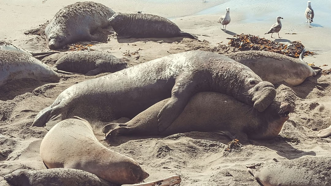 而在陸地上,重達2,200公斤的北象鼻海豹生活愜意,但在海洋中睡覺卻充滿危險,因為鯊魚和虎鯨等獵海豹的動物可能就潛伏在附近。北象鼻海豹會進行長達八個月的覓食之旅,反覆潛入好幾百公尺深的海底,捕食魚類、魷魚、魟魚和其他海洋生物。
