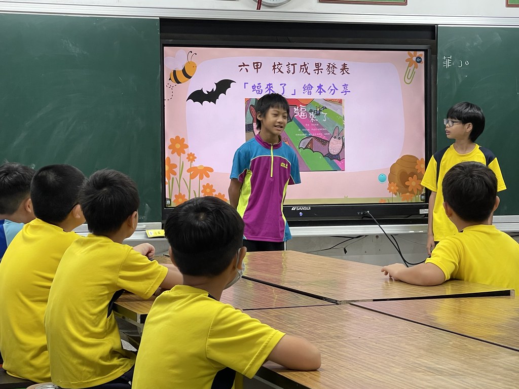 這樣的力量,也延伸成跨校、跨社區的文化實踐。她進一步與馬佛社區核心單位綠野香坡農村發展協會合作,製作《蝠來了》華語 / 阿美族語雙語繪本,將蝙蝠故事轉化為視覺敘事; 繪本不只獲得環境教育獎項,也被改編為戲劇、手偶演出,讓偏鄉孩子站上舞台,為自己相信的事發聲。